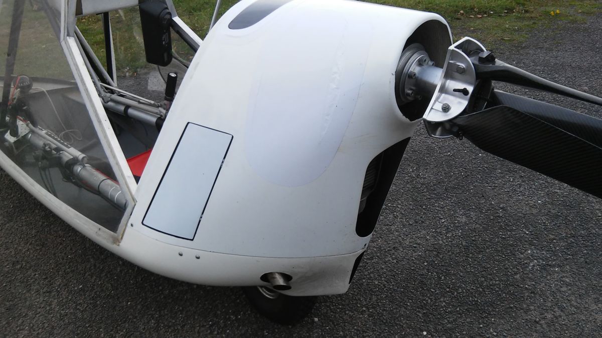In the pictures above you can see the engine, as well as cooling vents. Because the engine is behind pilot’s shoulders, there is not enough direct air stream for cooling, therefore we designed air intake vents (manual open/close). This system works well, however in the future we would like to use electrical fan induced air stream for engine head cooling.
